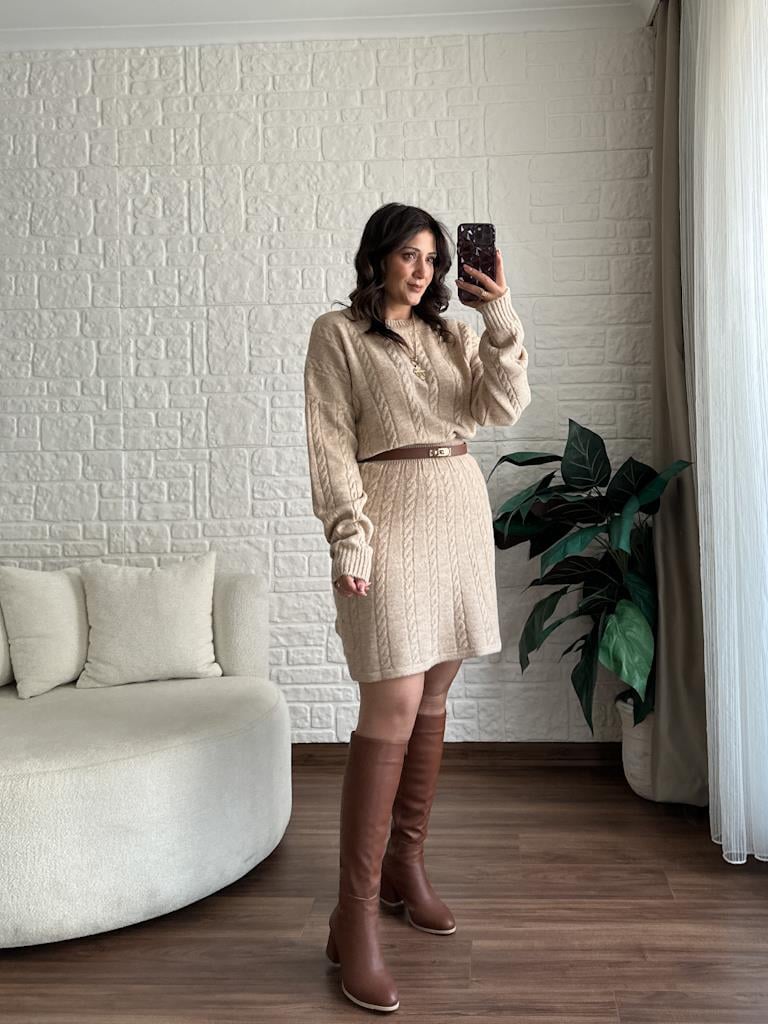 Bisiklet Yak Saç Örgü Triko Takım Camel