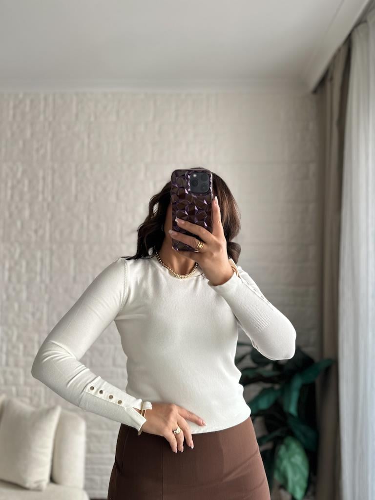 Dillvin Bisiklet Yaka Kol Ortası Droplu Kazak Ekru