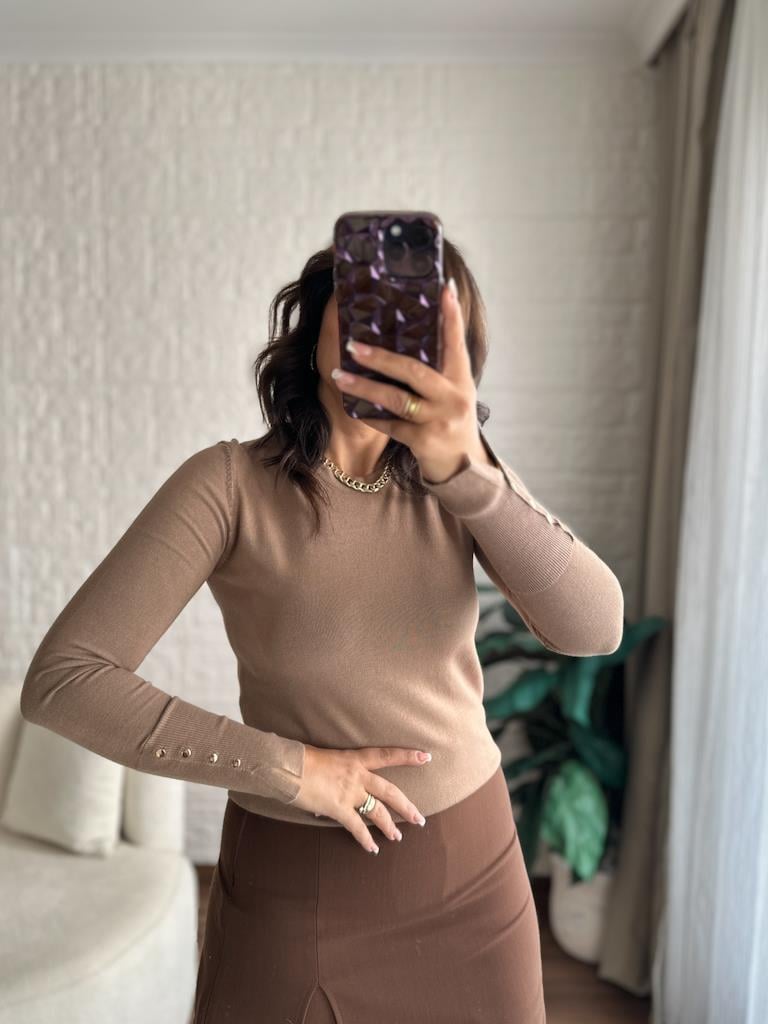 Dilvin Bisiklet Yaka Kol Ortası Droplu Kazak Vizon