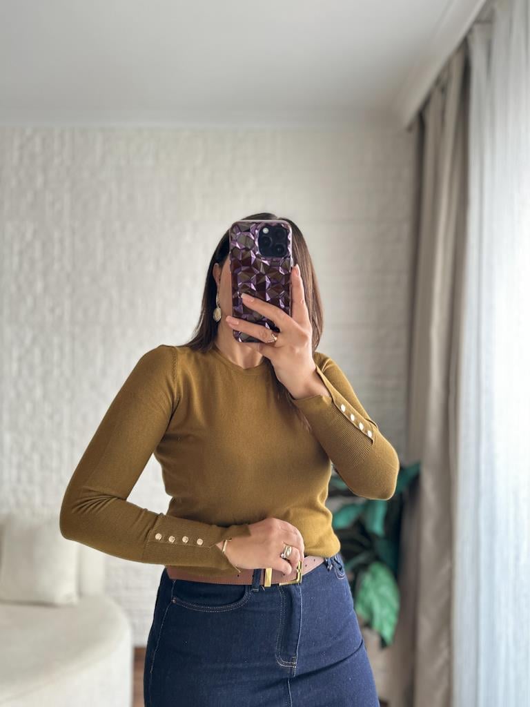 Dilvin Bisiklet Yaka Kol Ortası Droplu Kazak Yağ Yeşil