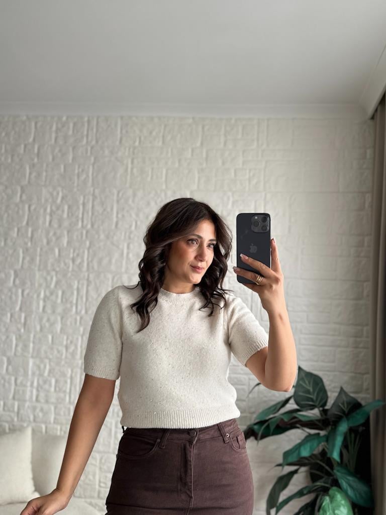 Dilvin Bisiklet Yaka Pullu Simli Triko Kazak Krem