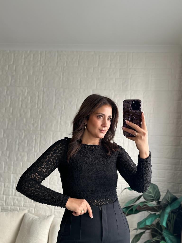 Dilvin Kayık Yaka Dantel Bluz Siyah