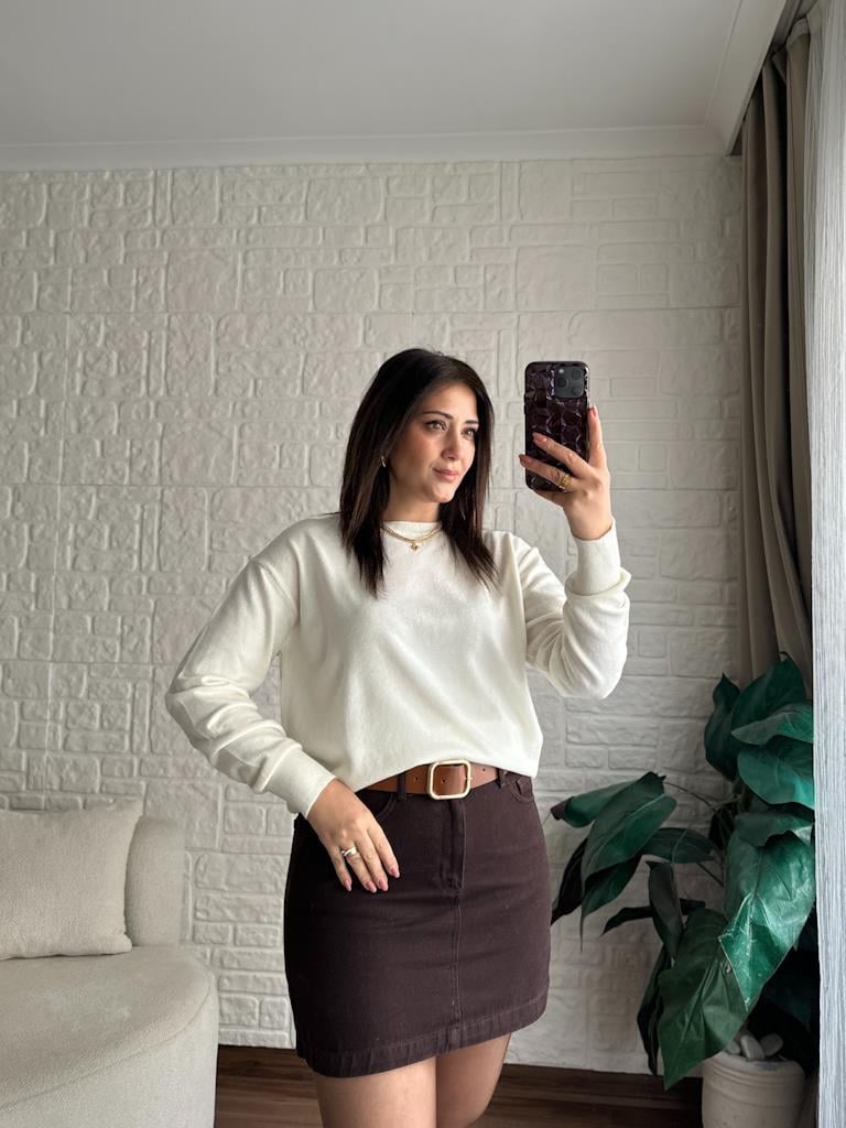 Bisiklet Yaka Yünlü Basic Triko Kazak Ekru