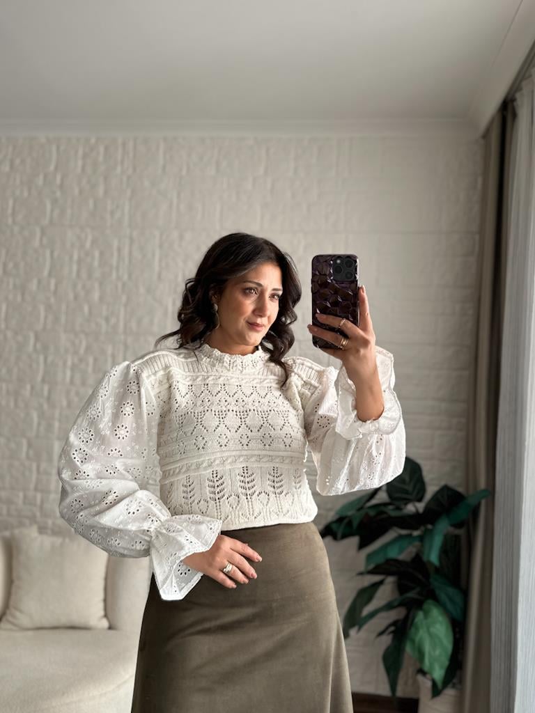 Kol Fisto Detay Ajur Model Triko Ekru