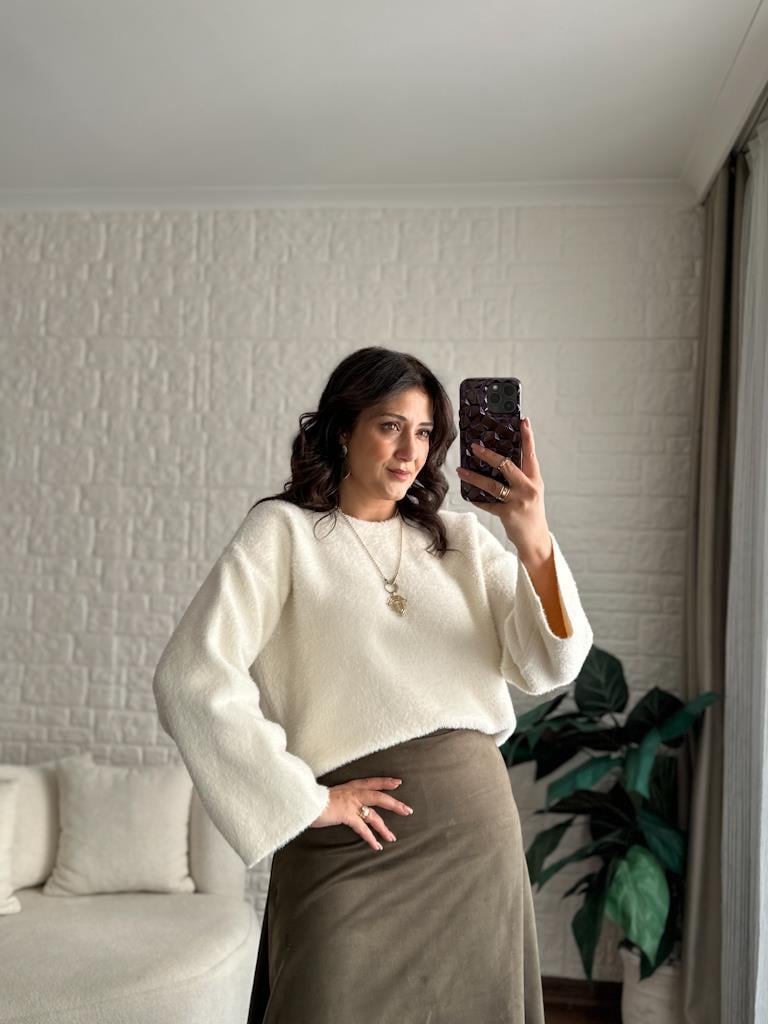 Marka Model Premium Oversize Yumoş Kazak Ekru