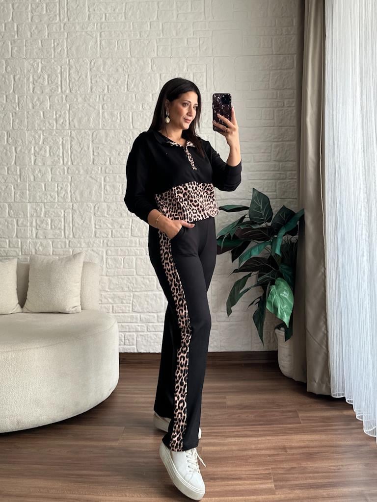 Modal Kumaş Kapşonlu Leopar Garnili Eşorman Takımı