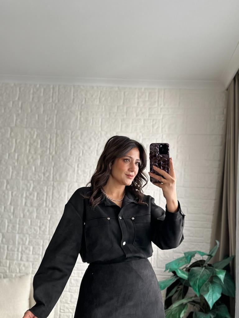Özel Üretim Süet Over Size Ceket Gömlek Siyah